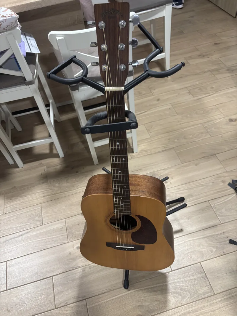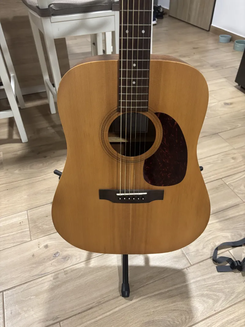 Eladó egy 2015-ös gyártású Sigma DME elektroakusztikus gitár. Egy hangszerbolti kapcsolatnak köszönhetően sok azonos hangszer közül lett kiválasztva, kiemelkedő hangzású darab. Sajnos jó ideje nem tudom kihasználni, ezért adom el.Prepojená recenzia (1)