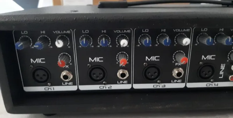 4 Mic/Line csatorna (CH1-4) független 2-sávos EQ és FX send bus állítható jelszinttel
