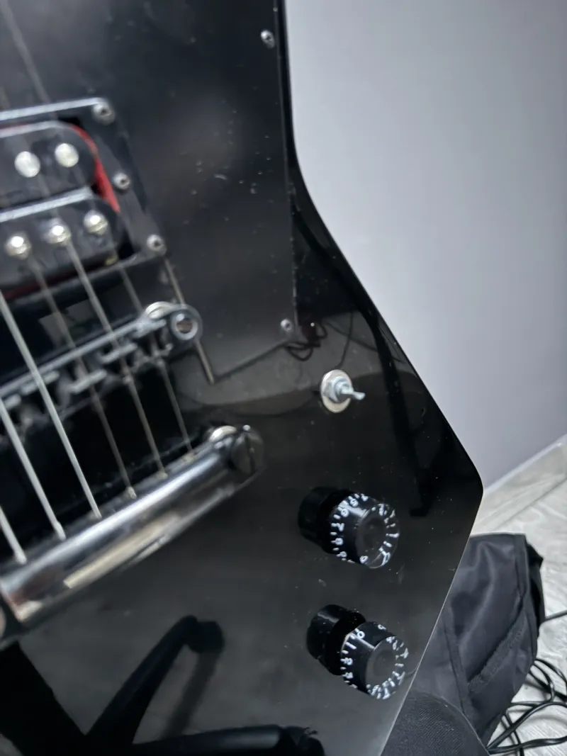 Eladó a képen látható állapotú, szép fekete elektromos gitár, otthon használt, pici kopás van rajta, a fotón látszik.Helyileg Hajdúnánáson, posta megoldható de nem olcsó, a vevő terhére!