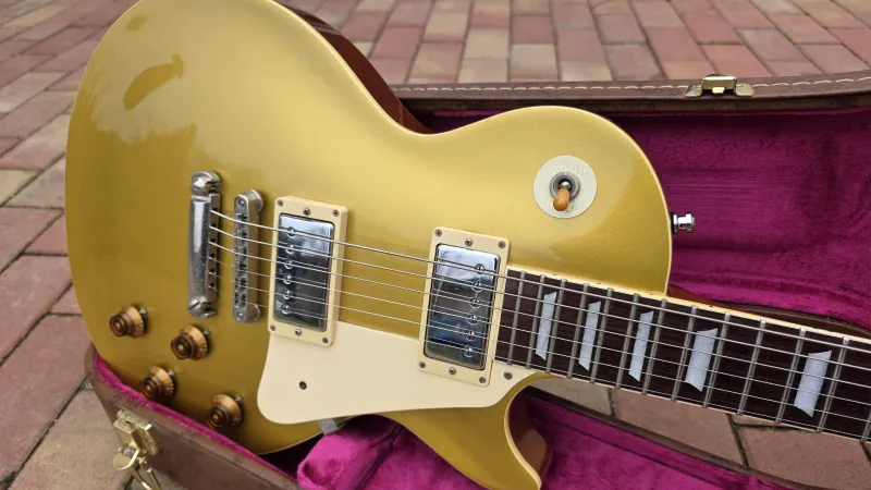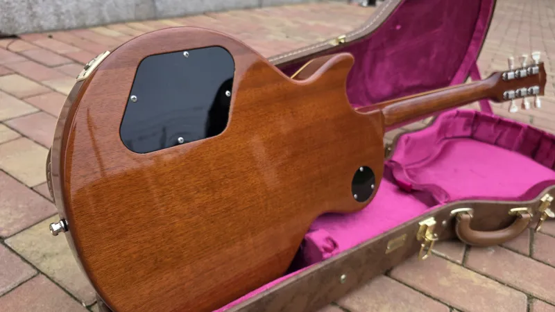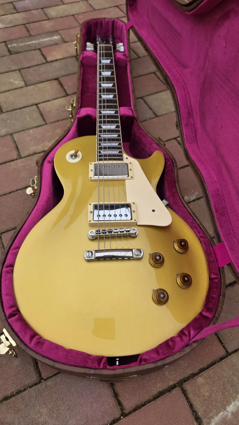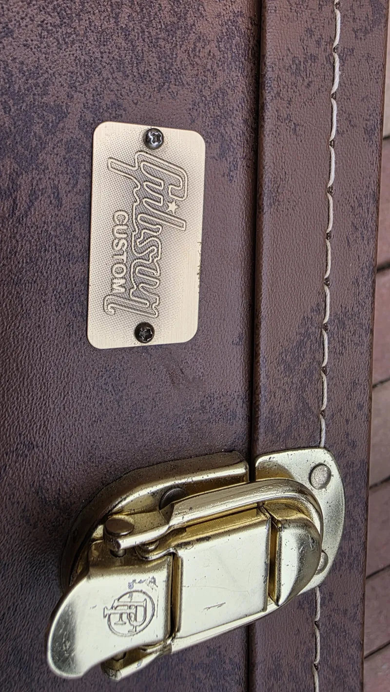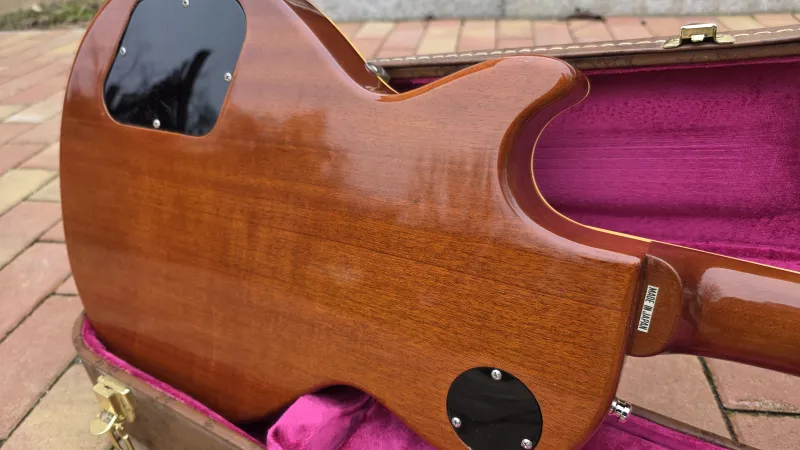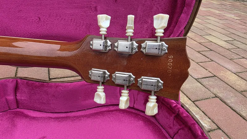 - Eredeti Gibson Custom keménytokban, ami természetesen gyárilag nem jár hozzá. Sőt, eredendően egyáltalán nem adnak tokot a Tokai gitárokhoz.