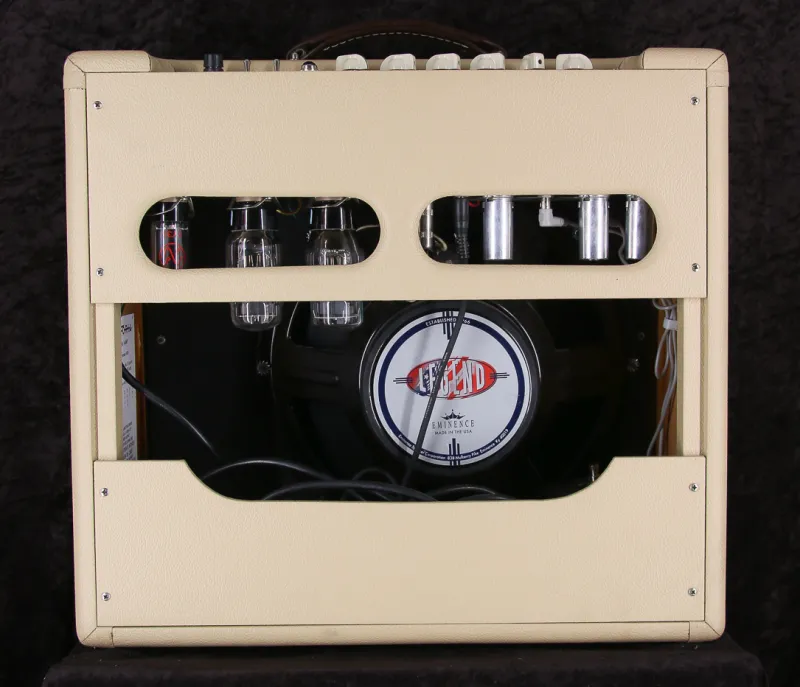 huenVictoria Regal 2, boutique erősítő, 30 watt, 6L6 GC csövekkel, Eminence Legend 15˝ hangszóróval. Valószínűleg 2007-es darab. A csövek jó állapotúak, nem kell cserélni. Brutális darab. Lábkapcsolóval.