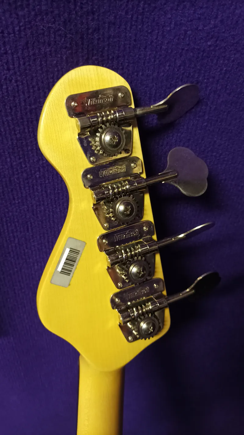 Eladó Vintage Advance Series AV4 basszusgitár, sunset sunburst színben.2007-2008-as évjárat, éger test, juhar nyak és rózsafa fogólap. A hardverek (híd, pickupok, kulcsok) mind gyári Wilkinsonok, nagyon jó tónusú hangszer, frissen újrahúrozva.