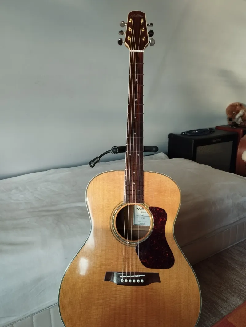 11 darabos gyűjteményemből szeretném eladni ezt a gyönyörű Waldent. Nemcsak nagyon megvigyázott darab, hanem elképesztő hang is van benne! Nem mai darab, jóval melegebben és karakteresebben szólal meg, mint utódai a G sorozatból. A test sapelli m.-cédrus párosítás, palisander fogólappal. Bundok kifogástalan állapotúak, a hangoló kulcsok úgyszintén. Pontos, és nagyon kényelmes hangszer. (egy kisebb lakksérülést fotóztam) Igény esetén elektronikát is tudok beszerelni anyagárban! Színpadképes középkategóriás hangszer. Székesfehérvárra be tudom vinni, de Sárszentmihályon van, ahol kipróbálást tudok biztosítani. A hangszer kifogástalan minőségére garanciát vállalok!Prepojená recenzia