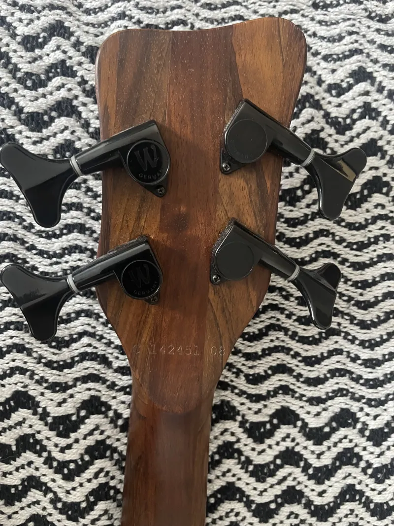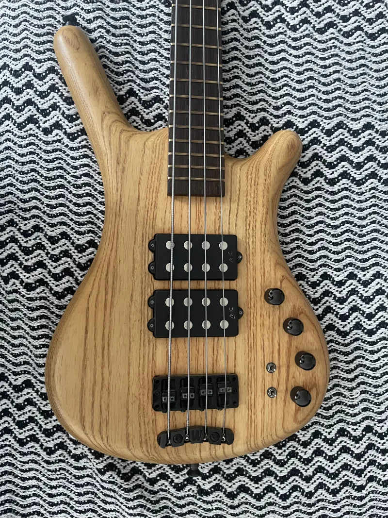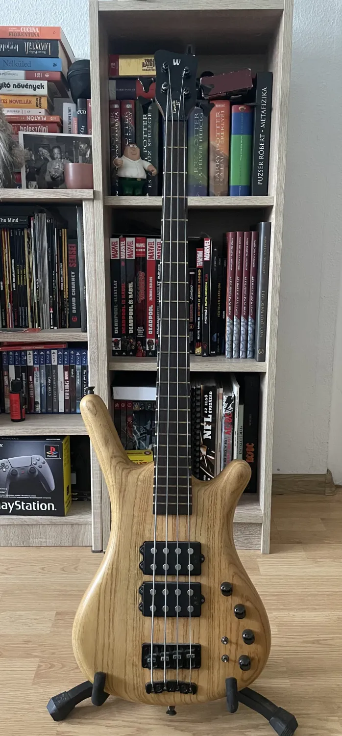 Üdv!Eladó sorba került szeretett WW Corvette basszusgitárom! Hosszú évekig aktív használatban volt, az utóbbi 4 évben az éves beállítást kivéve szinte sosem volt elővéve. Műszakilag hibátlan, friss elemmel, gyári kiegészítőivel és egy bontatlan Ernie Ball 45-105-ös húrszettel kínálom. A gyári tokot is adom hozzá, viseletes, de funkcióját ellátja. A fejen található egy apró benyomódás (kép csatolva).