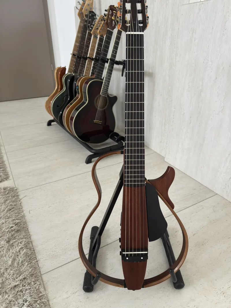 elektroakusztikus gitár: Silent széria, klasszikus gitár ihlette dizájn, kompakt kialakítás, mahagóni test, rózsafa és juhar keret, mahagóni nyak, rózsafa fogólap, menzúra: 650 mm, SRT rendszer, 2x AA 1,5V elemmel működtethető, az akusztikus gitár hangját imitálja, hangerőszabályzó, 2 sávos EQ, AUX hangerő, Smooth Control, kromatikus hangológép, SRT blend és effektek: Reverb1, Reverb2, Chorus, Line OUT/AUX IN/Phone Input/DC-IN, tartozék tok, sztereó fejhallgató, 2x AA elem, Tanslucent Black kivitelPrepojená recenzia